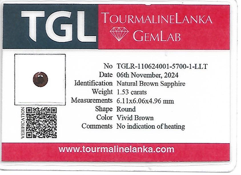 Warm, rare, and effortlessly elegant — this 1.53 carat natural brown sapphire is precision cut in a brilliant round shape to maximize sparkle and symmetry.