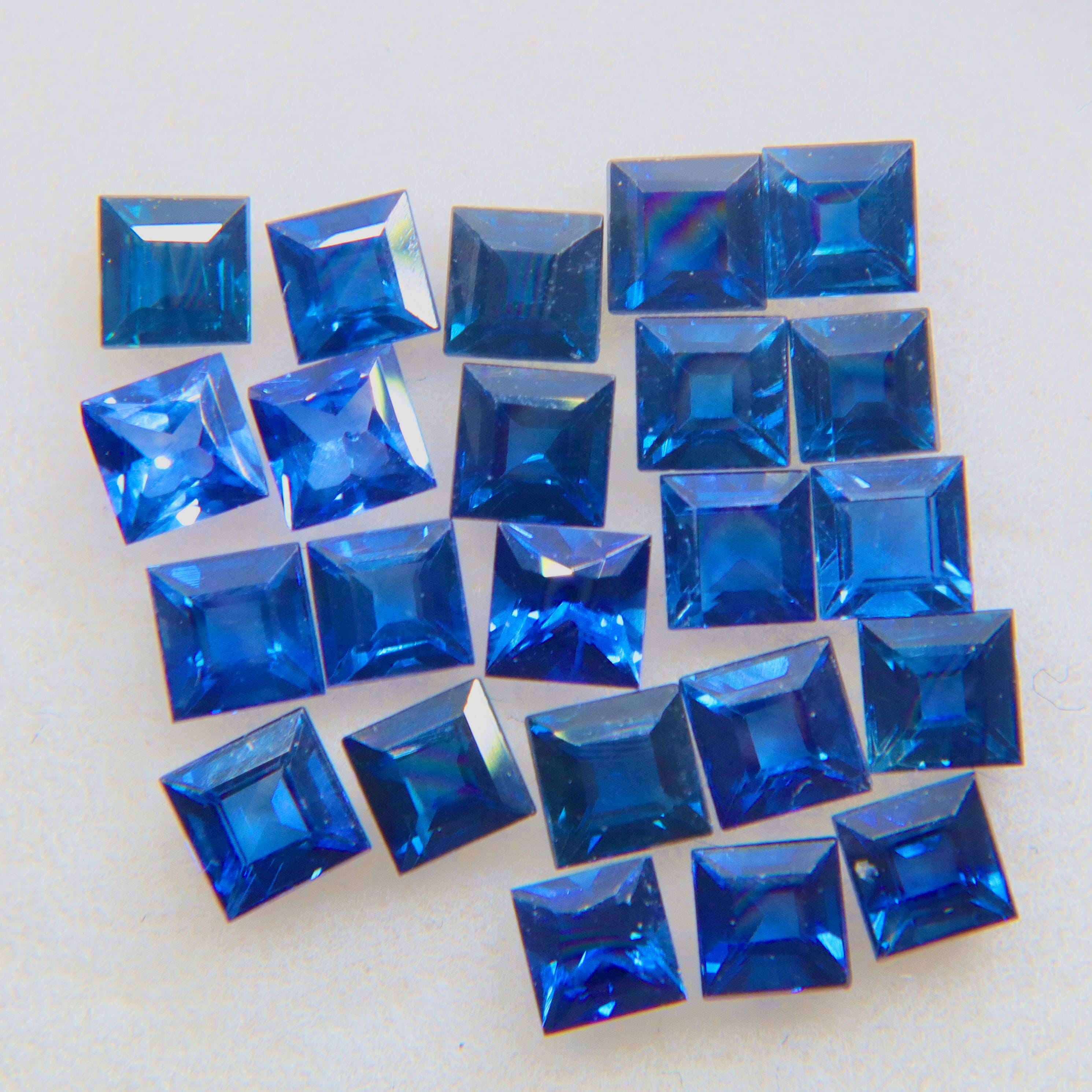 A precision-matched set of Natural Royal Blue Sapphires from Ceylon (Sri Lanka)—perfect for high-end layouts: eternity bands, pavé halos, channel settings, and multi-stone engagement rings. Crisp 3.00 mm princess cuts deliver clean geometry and vivid royal-blue color with VS–VVS clarity. Stones are traditional heated (fully disclosed), earth-sourced, and include our Gemstone Authenticity Confirmation.