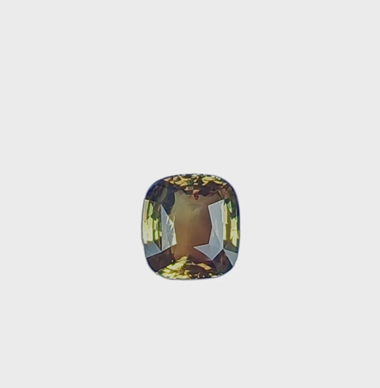 Certified by the Gemological Institute of America (GIA), this exceptional chrysoberyl gemstone displays a captivating yellow-green color that changes to pinkish brown under different lighting conditions, a hallmark characteristic that makes alexandrite one of the most valuable gemstones in the world.