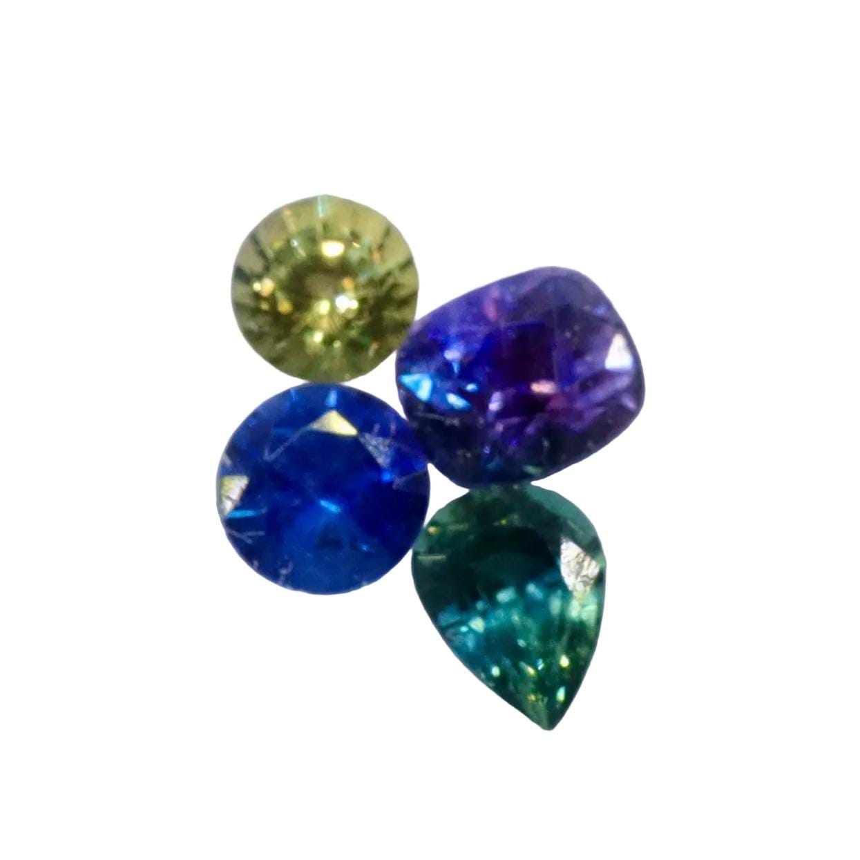 Discover a vibrant set of natural loose sapphires featuring a stunning mix of yellow, purple, blue, and green gemstones. This 0.98 carat multi sapphire parcel is perfect for creating custom jewelry, collecting rare gemstones, or designing a unique engagement ring.